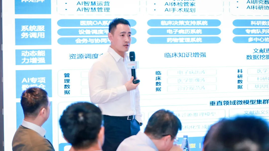 浙江省肿瘤医院信息工程部副主任孟振在《在路上:信息科AI转型的探索与讨论》演讲中介绍,结合个人使用AI编程工具的体验,类比医疗技术演进,指出AI正重塑开发范式;医院已搭建轻量级AI接口总线,实现多模型统一接入与调用,并结合低代码平台落地会议纪要提取、患者短信智能分类等场景。他强调,信息科需夯实技术基础,推动从“维护型”向“共创型”转变,并呼吁建立院内AI治理机制与激励体系,以支撑医院高质量发展。阿里云在《未来医疗 向AI前行》演讲中指出,AI是破解医疗资源不均、看病难贵的关键抓手。医疗AI已从判别式走向生成式大模型,具备泛化、推理与多智能体协作能力,并正从“单点工具”走向“全院智能操作系统”、从“提效工具”升级为“临床共决策伙伴”、从“院内”扩展至“院内+家庭+社区”全周期健康管理。阿里云依托千问大模型、飞天云平台、智能算力基础设施以及联合生态打造丰富AI场景,已形成覆盖诊疗辅助、影像辅诊、精细管理、科研创新的全栈AI能力,助力医院构建高效、合规、可扩展的AI新范式,加速医院迈向高质量发展新阶段。